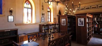 Kütüphanenin iç tasarımı oldukça sade ve tarihsel kimliğe uygun şekilde düzenlenmiştir. İçeride binlerce kitap bulunur ve çoğu farklı disiplinlerden gelen özgün eserlerdir. Rum taş işçiliğinin korunduğu mekan, geçmiş ve modern kültürün zarif bir birleşimi niteliğindedir. Ziyaretçiler hem tarihi bir yapı içinde bulunmanın hem de entelektüel bir atmosferde vakit geçirmenin ayrıcalığını hisseder.